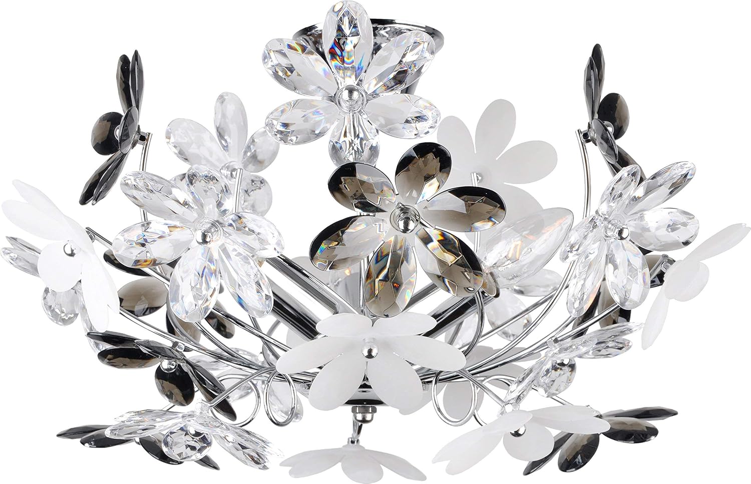Etc-shop Deckenleuchte Glas Decken Leuchte Blätter Wohn Zimmer Beleuchtung Lampe braun weiß im Set inkl. Etc-shop Deckenleuchte 15 Watt Decken Lampe Wohn Zimmer Beleuchtung Blüten Blätter Leuchte Chrom im Set inklusive LED- Leuchtmittel 5880 LED Design Decken Lampe Wohn Zimmer Beleuchtung Dimmer Glas Lampe chrom Reality Leuchten R62341106. A bis E LED Ø45cm 3 x E14 Chrom Farbwahl -.