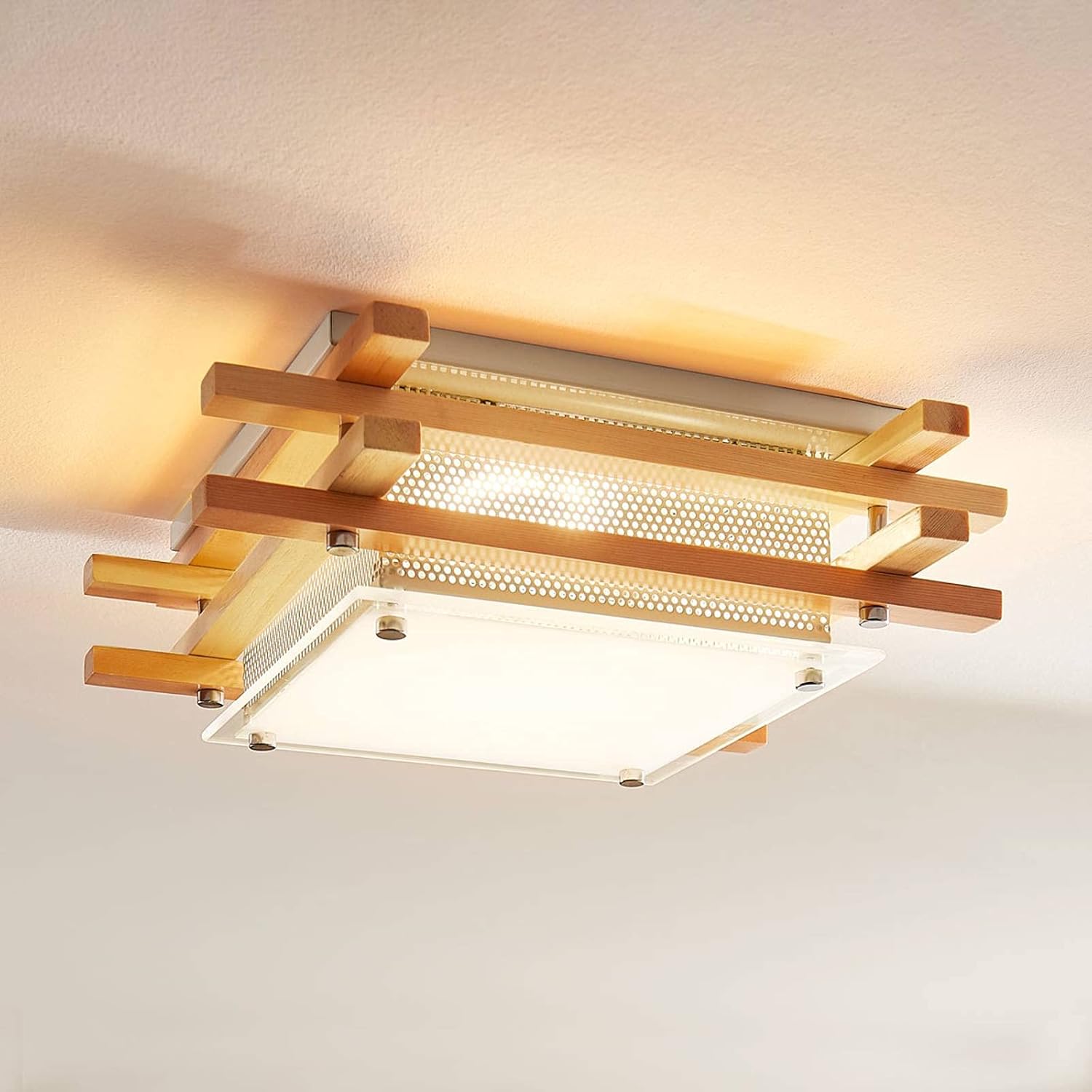 Eiche Hell 380 Quadro E27 Deckenleuchte Deckenlampe Holz Glas Viereck Quadrat Ebay