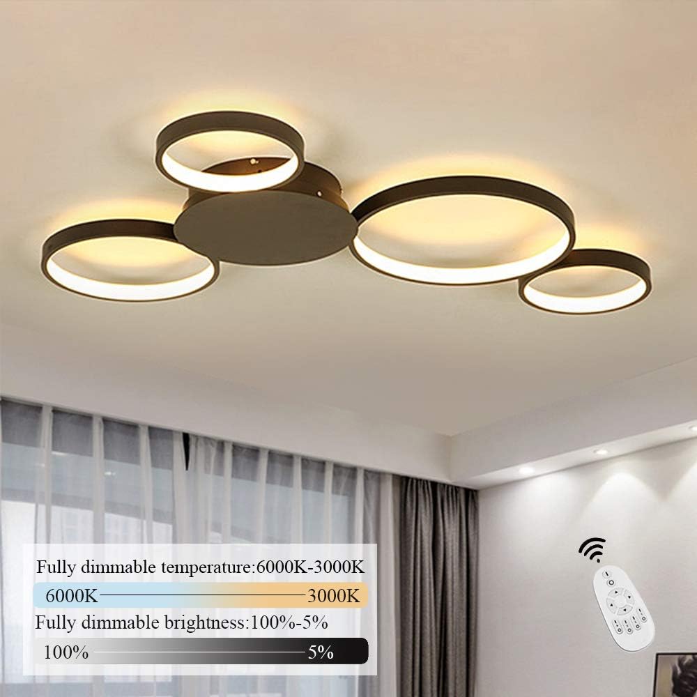 Zmh Deckenlampe Led Deckenleuchte Wohnzimmerlampe Schwarz Dimmbar Mit Fernbedienung Modern Design 4 Ring 52w Innen Aus Aluminium Fur Schlafzimmer Wohnzimmer Kinderzimmer Esszimmer Amazon De Beleuchtung