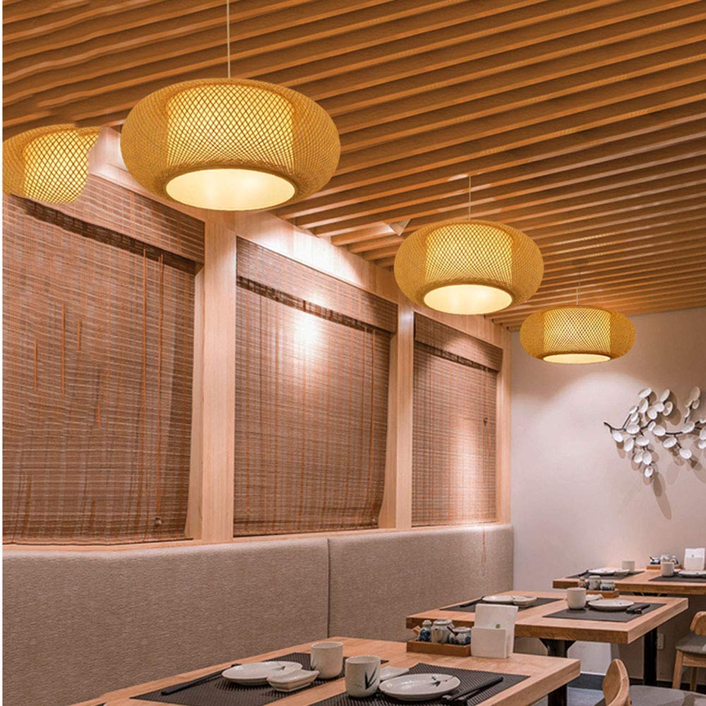 Für Leuchtmittel mit E27-Sockel. Deckenleuchte bambus auf Lager. 40W Rattan Runde Lampenschirm Rustikal Decke Beleuchtung für Esszimmer Büro Bar Küche Loft Ø40cm.