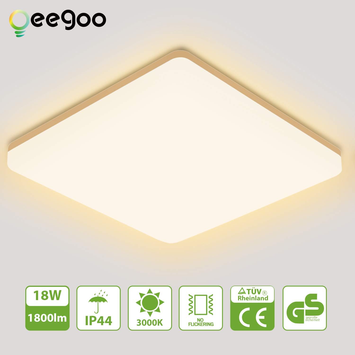 Deckenleuchten 100lm W Ip44 Badleuchte Led Feuchtraumleuchte Fur Wohnzimmer Schlafzimmer Badezimmer Balkon Flur Kuchenlampe Deckenlampe Warmweiss 3000k 18w 1800lm Oeegoo Led Deckenleuchte Bad Beleuchtung