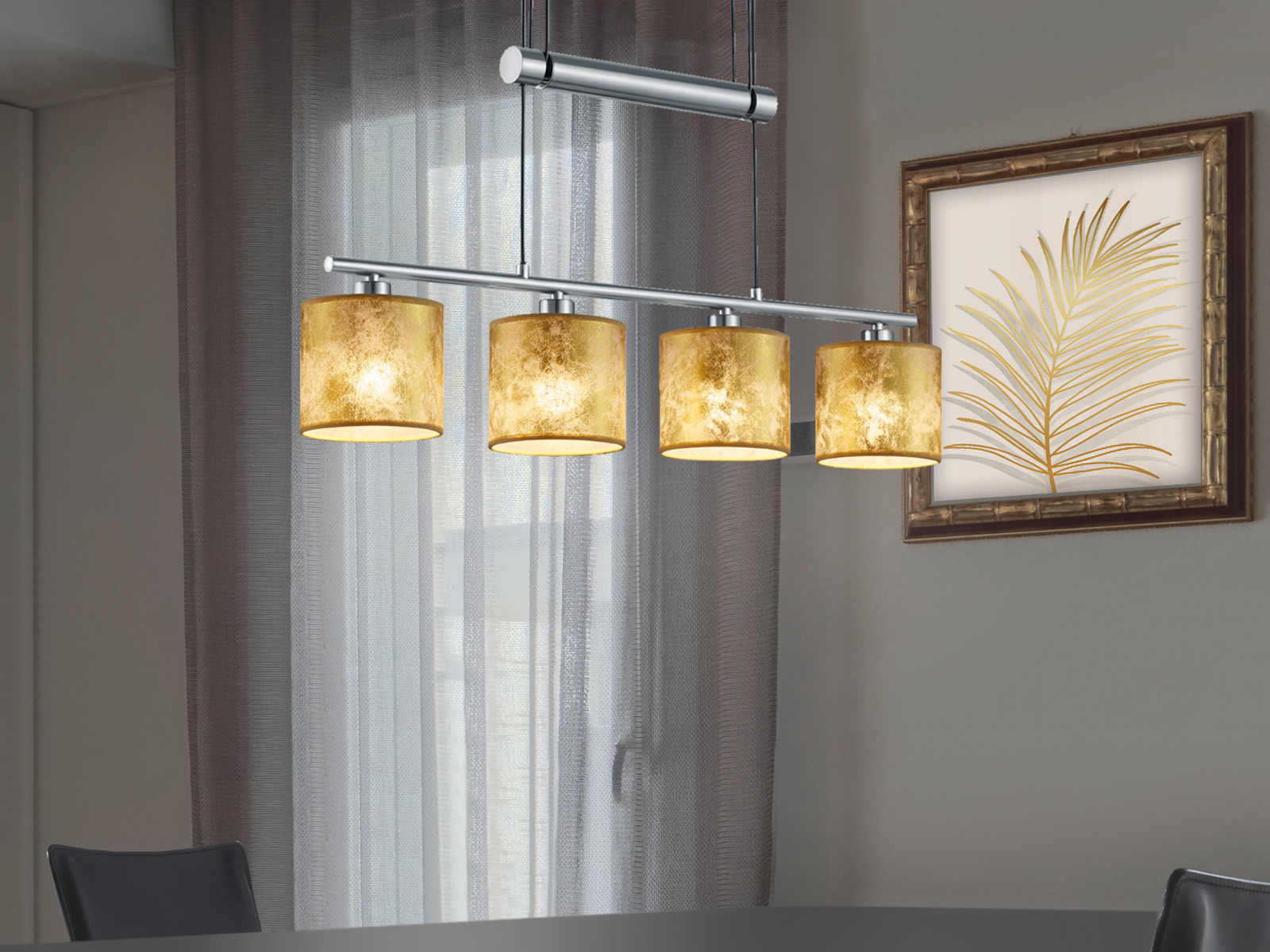 4flammige Pendellampe Hohenverstellbar Hangelampe Textilschirme Gold Esstisch Ebay