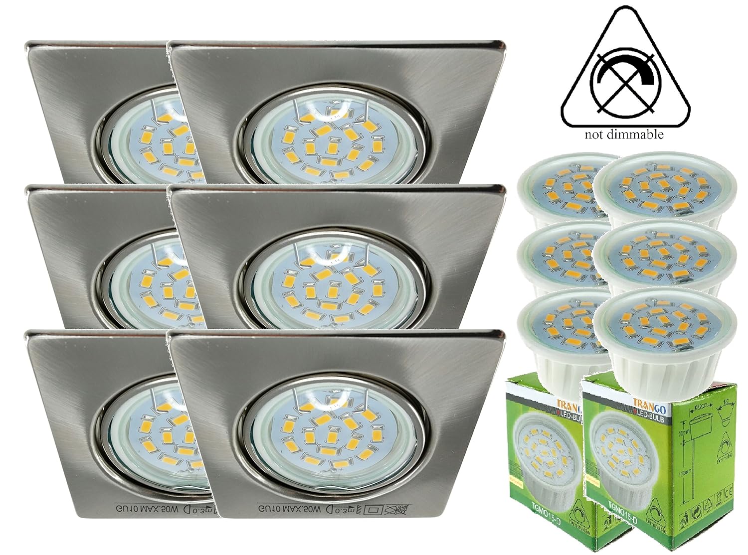 Beleuchtung Einbauleuchten Trango 6er Set Ip44 Led Einbaustrahler In Nickel Matt Eckig Tg6729ip 062smo Inkl 6x 5 W Led Modul Nur 3cm Einbautiefe Fur Bad I Dusche I Einbauspots I Deckenspots I Deckenleuchten